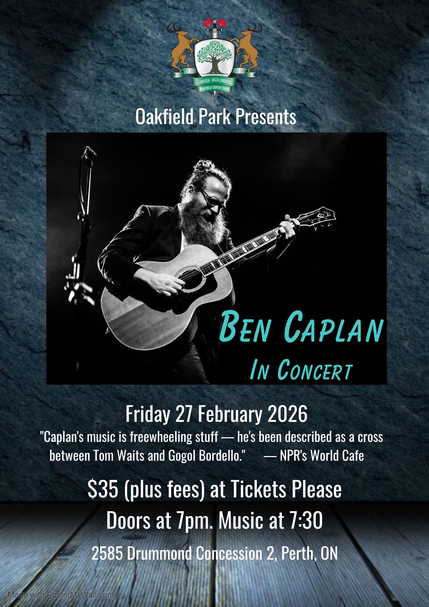 Ben Caplan live at Oakfield Park. Friday, February 27